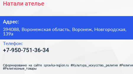 Натали, ателье по адресу 394088, Воронежская область, Воронеж, Новгородская, 139а в дальнейшем Организация, размещена в следующих категориях: