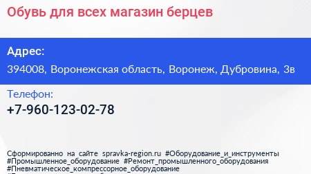 Обувь для всех, магазин берцев по адресу 394008, Воронежская область, Воронеж, Дубровина, 3в в дальнейшем Организация, размещена в следующих категориях: