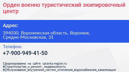 Орден, военно-туристический экипировочный центр по адресу 394030, Воронежская область, Воронеж, Средне-Московская, 31 в дальнейшем Организация, размещена в следующих категориях: