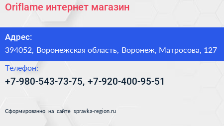 Oriflame, интернет-магазин по адресу 394052, Воронежская область, Воронеж, Матросова, 127 в дальнейшем Организация, размещена в следующих категориях: