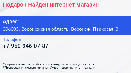 Подарок-Найден, интернет-магазин по адресу 396005, Воронежская область, Воронеж, Парковая, 3 в дальнейшем Организация, размещена в следующих категориях: