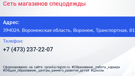 Сеть магазинов спецодежды по адресу 394024, Воронежская область, Воронеж, Транспортная, 81 в дальнейшем Организация, размещена в следующих категориях: