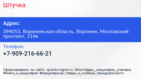 Штучка по адресу 394053, Воронежская область, Воронеж, Московский проспект, 114в в дальнейшем Организация, размещена в следующих категориях: