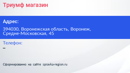 Триумф, магазин по адресу 394030, Воронежская область, Воронеж, Средне-Московская, 45 в дальнейшем Организация, размещена в следующих категориях: