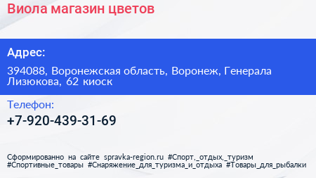 Виола, магазин цветов по адресу 394088, Воронежская область, Воронеж, Генерала Лизюкова, 62 киоск в дальнейшем Организация, размещена в следующих категориях:
