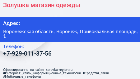 Золушка, магазин одежды по адресу Воронежская область, Воронеж, Привокзальная площадь, 1 в дальнейшем Организация, размещена в следующих категориях: