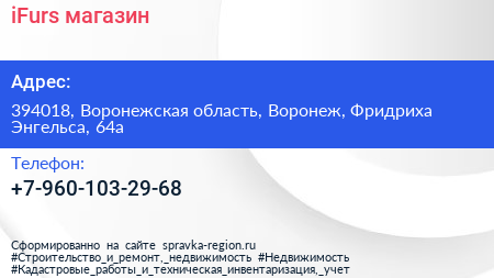 iFurs, магазин по адресу 394018, Воронежская область, Воронеж, Фридриха Энгельса, 64а в дальнейшем Организация, размещена в следующих категориях: