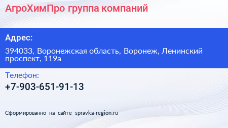 АгроХимПро, группа компаний по адресу 394033, Воронежская область, Воронеж, Ленинский проспект, 119а в дальнейшем Организация, размещена в следующих категориях: