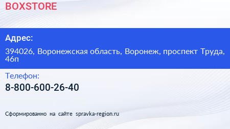 BOXSTORE по адресу 394026, Воронежская область, Воронеж, проспект Труда, 46п в дальнейшем Организация, размещена в следующих категориях: