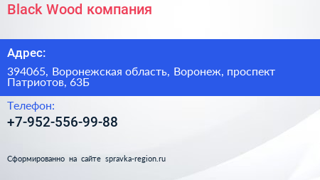Black Wood, компания по адресу 394065, Воронежская область, Воронеж, проспект Патриотов, 63Б в дальнейшем Организация, размещена в следующих категориях: