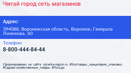 Читай-город, сеть магазинов по адресу 394088, Воронежская область, Воронеж, Генерала Лизюкова, 60 в дальнейшем Организация, размещена в следующих категориях: