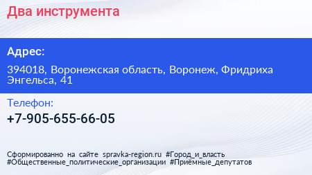 Два инструмента по адресу 394018, Воронежская область, Воронеж, Фридриха Энгельса, 41 в дальнейшем Организация, размещена в следующих категориях: