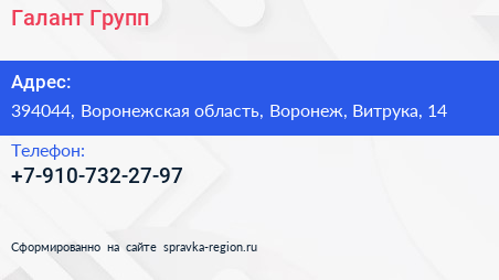 Галант Групп по адресу 394044, Воронежская область, Воронеж, Витрука, 14 в дальнейшем Организация, размещена в следующих категориях: