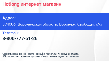 Hotlong, интернет-магазин по адресу 394006, Воронежская область, Воронеж, Свободы, 69а в дальнейшем Организация, размещена в следующих категориях: