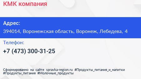 КМК, компания по адресу 394014, Воронежская область, Воронеж, Лебедева, 4 в дальнейшем Организация, размещена в следующих категориях: