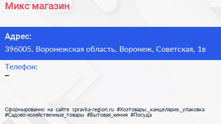 Микс, магазин по адресу 396005, Воронежская область, Воронеж, Советская, 1в в дальнейшем Организация, размещена в следующих категориях: