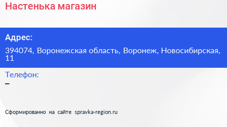 Настенька, магазин по адресу 394074, Воронежская область, Воронеж, Новосибирская, 11 в дальнейшем Организация, размещена в следующих категориях: