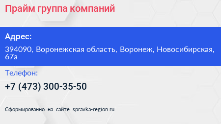 Прайм, группа компаний по адресу 394090, Воронежская область, Воронеж, Новосибирская, 67а в дальнейшем Организация, размещена в следующих категориях: