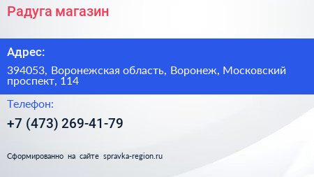 Радуга, магазин по адресу 394053, Воронежская область, Воронеж, Московский проспект, 114 в дальнейшем Организация, размещена в следующих категориях: