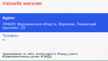 Vaisselle, магазин по адресу 394029, Воронежская область, Воронеж, Ленинский проспект, 23 в дальнейшем Организация, размещена в следующих категориях:
