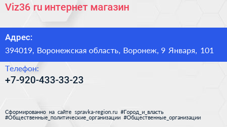 Viz36.ru, интернет-магазин по адресу 394019, Воронежская область, Воронеж, 9 Января, 101 в дальнейшем Организация, размещена в следующих категориях: