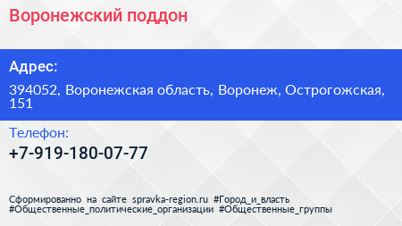 Воронежский поддон по адресу 394052, Воронежская область, Воронеж, Острогожская, 151 в дальнейшем Организация, размещена в следующих категориях: