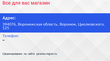 Все для вас, магазин по адресу 394076, Воронежская область, Воронеж, Циолковского, 125 в дальнейшем Организация, размещена в следующих категориях: