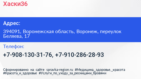 Хаски36 по адресу 394091, Воронежская область, Воронеж, переулок Беляева, 17 в дальнейшем Организация, размещена в следующих категориях:
