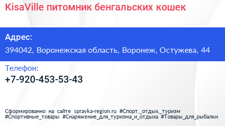 KisaVille, питомник бенгальских кошек по адресу 394042, Воронежская область, Воронеж, Остужева, 44 в дальнейшем Организация, размещена в следующих категориях: