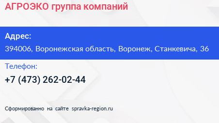АГРОЭКО, группа компаний по адресу 394006, Воронежская область, Воронеж, Станкевича, 36 в дальнейшем Организация, размещена в следующих категориях: