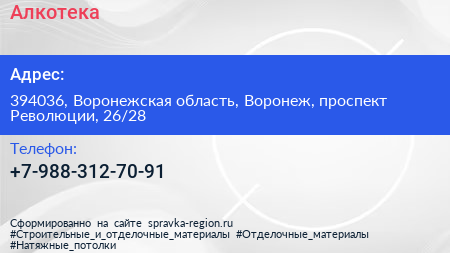 Алкотека по адресу 394036, Воронежская область, Воронеж, проспект Революции, 26/28 в дальнейшем Организация, размещена в следующих категориях: