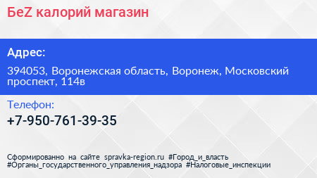 БеZ калорий, магазин по адресу 394053, Воронежская область, Воронеж, Московский проспект, 114в в дальнейшем Организация, размещена в следующих категориях: