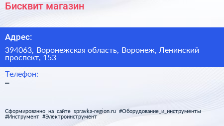 Бисквит, магазин по адресу 394063, Воронежская область, Воронеж, Ленинский проспект, 153 в дальнейшем Организация, размещена в следующих категориях: