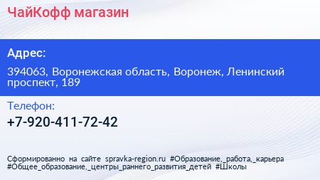 ЧайКофф, магазин по адресу 394063, Воронежская область, Воронеж, Ленинский проспект, 189 в дальнейшем Организация, размещена в следующих категориях: