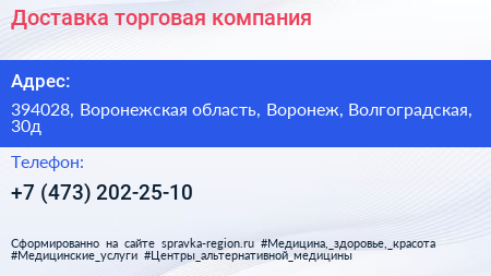 Для связи с организацией воспользуйтесь номером телефона: +7 (473) 202-25-10. Пн: c 08:00-21:00, Вт: c 08:00-21:00, Ср: c 08:00-21:00, Чт: c 08:00-21:00, Пт: c 08:00-21:00, Сб: выходной, Вс: выходной, вы можете обратиться в эту организацию.