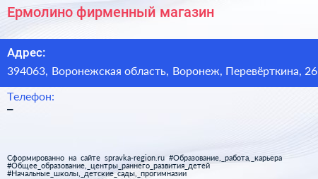 Ермолино, фирменный магазин по адресу 394063, Воронежская область, Воронеж, Перевёрткина, 26 в дальнейшем Организация, размещена в следующих категориях: