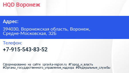 HQD|Воронеж по адресу 394030, Воронежская область, Воронеж, Средне-Московская, 32Б в дальнейшем Организация, размещена в следующих категориях: