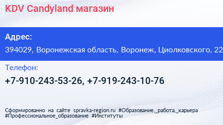 KDV Сandyland, магазин по адресу 394029, Воронежская область, Воронеж, Циолковского, 22 в дальнейшем Организация, размещена в следующих категориях: