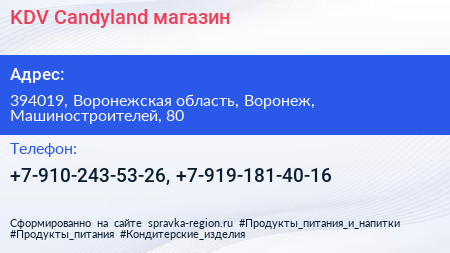 KDV Сandyland, магазин по адресу 394019, Воронежская область, Воронеж, Машиностроителей, 80 в дальнейшем Организация, размещена в следующих категориях: