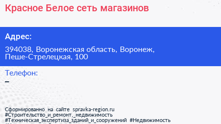 Красное & Белое, сеть магазинов по адресу 394038, Воронежская область, Воронеж, Пеше-Стрелецкая, 100 в дальнейшем Организация, размещена в следующих категориях: