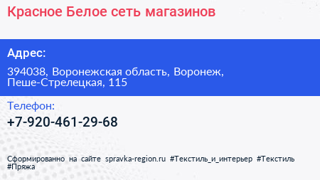 Красное & Белое, сеть магазинов по адресу 394038, Воронежская область, Воронеж, Пеше-Стрелецкая, 115 в дальнейшем Организация, размещена в следующих категориях: