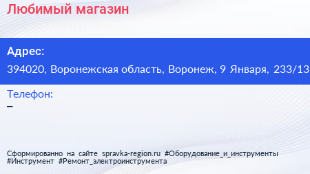Любимый, магазин по адресу 394020, Воронежская область, Воронеж, 9 Января, 233/13 в дальнейшем Организация, размещена в следующих категориях: