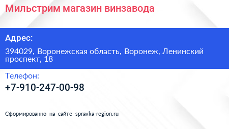 Мильстрим, магазин винзавода по адресу 394029, Воронежская область, Воронеж, Ленинский проспект, 18 в дальнейшем Организация, размещена в следующих категориях: