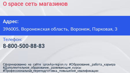 O: spaсe, сеть магазинов по адресу 396005, Воронежская область, Воронеж, Парковая, 3 в дальнейшем Организация, размещена в следующих категориях: