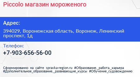 Piccolo, магазин мороженого по адресу 394029, Воронежская область, Воронеж, Ленинский проспект, 1д в дальнейшем Организация, размещена в следующих категориях: