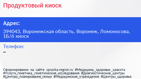 Продуктовый киоск по адресу 394043, Воронежская область, Воронеж, Ломоносова, 1Б/6 киоск в дальнейшем Организация, размещена в следующих категориях: