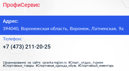 ПрофиСервис по адресу 394040, Воронежская область, Воронеж, Латненская, 9а в дальнейшем Организация, размещена в следующих категориях: