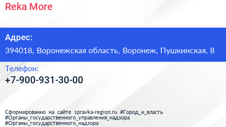 Reka & More по адресу 394018, Воронежская область, Воронеж, Пушкинская, 8 в дальнейшем Организация, размещена в следующих категориях: