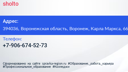 sholto по адресу 394036, Воронежская область, Воронеж, Карла Маркса, 66 в дальнейшем Организация, размещена в следующих категориях: