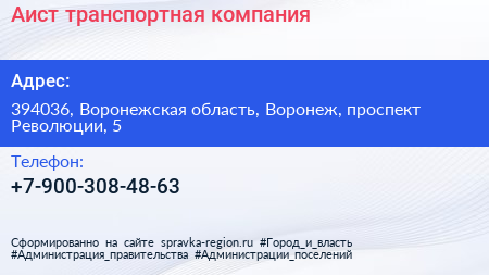 Аист, транспортная компания по адресу 394036, Воронежская область, Воронеж, проспект Революции, 5 в дальнейшем Организация, размещена в следующих категориях: